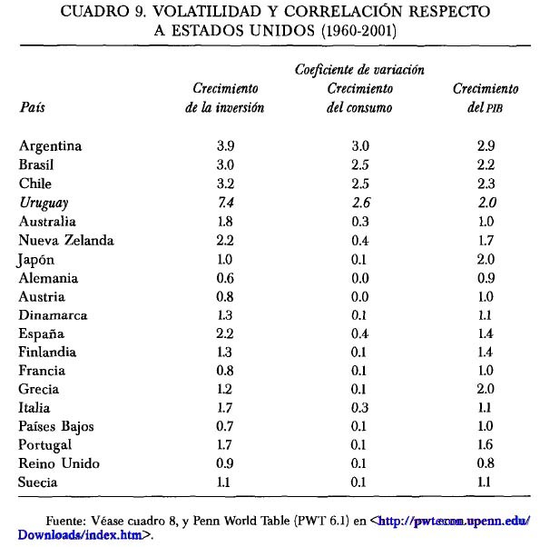 La volatilidad del crecimiento de la inversión, del consumo y del PIB de Uruguay, al igual que en los otros países latinoamericanos, es mayor que en el resto (véase cuadro 9, p. 50).