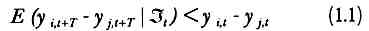 Lo anterior requiere diferenciar los conceptos catching-up y convergencia de largo plazo (Bernard y Durlauf, 1995). En un proceso de convergencia tipo catching-up los países i y j convergen entre el momento t y el momento t+T si se espera que la disparidad entre los productos por trabajador en el momento t descienda en valor. Representando conal conjunto de información disponible en el momento t y suponiendo y i, t > y j, t ,
