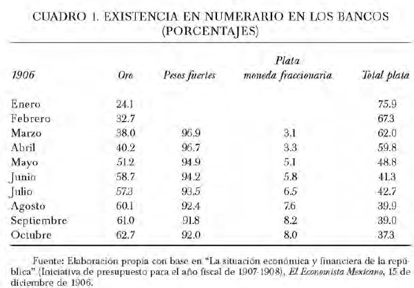 Hasta noviembre de 1905, que fue cuando llegaron del extranjero las primeras remesas de oro, las existencias metálicas de los bancos estuvieron formadas por monedas fuertes de plata, pero a partir de ese momento lo estuvieron por monedas de ambos metales preciosos como se expresa en el cuadro 1.31