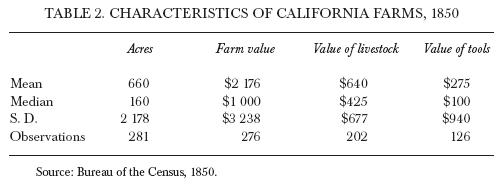 The inference to be drawn is that California farmers in the 1850s did not face a very different set of capital costs than farmers on other American frontiers, particularly where land clearing costs were minimal.44 If land, tools, and livestock values were not significantly different from farms on other frontiers, then it remains to be shown how California wheat farmers overcame high labor costs and their relative isolation from foreign markets.