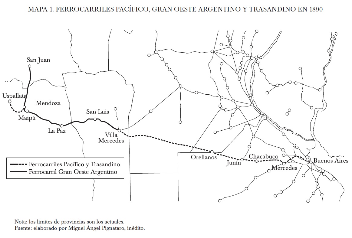 La empresa Gran Oeste Argentino fue creada para adquirir una línea ferroviaria ya existente. Corresponde, entonces, ocuparse de ella para entender el surgimiento de la nueva empresa. Entre 1881 y 1885 el gobierno federal argentino había construido por administración las secciones entre Villa Mercedes (provincia de San Luis), Mendoza (capital de la provincia del mismo nombre) y San Juan (también capital de la provincia homónima), como prolongaciones del denominado Ferrocarril Andino, que se desprendía como un ramal del Ferrocarril Central Argentino en la estación Villa María (provincia de Córdoba) y de allí se extendía a Río Cuarto y Villa Mercedes. En 1885 habían sido habilitados los servicios hasta Mendoza y San Juan (véase mapa 1). Cuando Miguel Juárez Celman asumió la presidencia de Argentina en octubre de 1886, inmediatamente puso de manifiesto su intención de vender los ferrocarriles de propiedad del Estado federal y la primera venta que llevó a cabo fue la de las secciones entre Villa Mercedes y San Juan. Ello fue debido a que era la venta que requería menos trámites previos. Invocando una ley anterior y un contrato de concesión de 1878, el presidente consideró que no necesitaba autorización del Congreso de diputados y senadores para ceder esa línea a sus concesionarios originales, anteriores a la construcción estatal, los hermanos chilenos Juan Eduardo y Mateo Clark, debiendo estos entregar al Estado a cambio todo lo que este había gastado para erigir lo que se cedía.