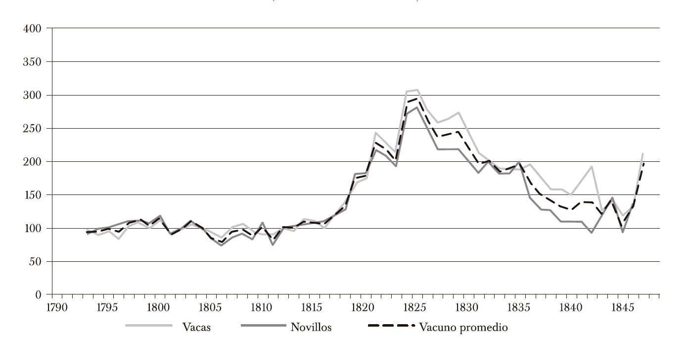 27 Sobre la caída de precios de los vacunos en Buenos Aires entre 1791 y 1808, véase Garavaglia (1999).